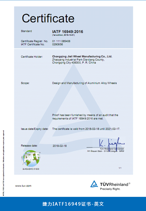 重庆捷力轮毂制造有限公司创建于一九九六年六月,十七年来公司依靠先进的经营管理理念,求真务实,奋力拼搏,一跃成为国内一流的专业生产摩托车铝合金轮毂的现代化企业。公司原址位于重庆九龙坡区盘龙,因企业发展需要于2006年整体搬迁至重庆垫江工业园区。新厂区固定资产投资2亿元,占地200余亩,厂房及配套设施建筑面积8万平方米。拥有各类先进的生产设备370余台套,摩托车铝合金轮毂设计能力达到年产销规模1200万只。 为了实现产品的精良制造,工厂装备了先进的模具设计制造、铸造、热处理、表面涂装、机械加工、装配等生产设备和光电直读光谱仪、金相显微镜、X射线无损探伤仪、强度及耐久性试验机、全套化学分析检测设备等先进的检测仪器和设备,同时建立完备的设计研发手段(CAD/CAM),能够自主研发摩托车铝合金车轮模具及产品,现已拥有专利项目60余项。严格按照ISO9001-2000及TS16949标准建立健全质量管理体系,导入精益生产,六西格玛品质管理等先进管理思想和理念,为产品的高质量,高可靠性提供了有力的保证。 公司现有职工1500余人,其中中高级工程技术人员100余人。自2006年新厂投产以来,生产销售持续兴旺,步步登高,到2012年末更是达到产销摩托车铝合金轮毂900万只,年销售收入超过10亿元。品种上千余个,国内铝轮毂市场占有率排列属首,并远销东南亚、中东、欧美等市场。产品为多家国内国际著名品牌摩托车整车配套(广州五羊本田、大阳、大运、奔马、上海新大洲本田、天津新大洲本田、钱江集团、轻骑集团、北方易初、重庆嘉陵、隆鑫、宗申、鑫源、力帆、建设、银钢、银翔、印度英雄集团、巴西本田、越南本田等),已形成以本市、国内、海外为主的三大市场体系。取得了良好的经济效益,获得了较高的市场知名度,成为业界的知名企业。 重庆捷力轮毂制造有限公司连年被国内外各主机厂评为A级供货商。2002年10月,公司通过ISO9001质量体系认证,2008年12月通过ISO/TS16949质量体系认证,公司在国内外业界享有极高的声誉。 重庆捷力轮毂制造有限公司先后获得中国摩托车零部件优秀企业、重庆工业企业五十强、重庆名牌产品、以及众多摩托车厂家优秀供应商金奖等荣誉和称号。 公司秉持“比过去更好、比同行更好、比顾客期望更好”的企业理念,打造“客户满意、同行尊敬、员工自豪”的公司愿景,坚持“铸造精品、造福社会、精细管理、不断改善、追求卓越”的经营宗旨,不断提升企业的核心竞争力,在经营实践中不断追求完美、追求卓越、竭诚为广大用户服务,共谋发展,共铸辉煌。
